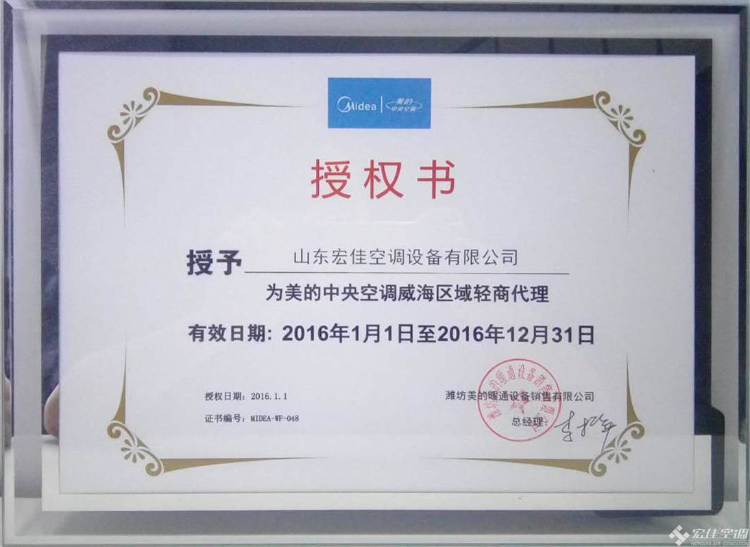 美的中央空調(diào)區(qū)域代理 授權(quán)書